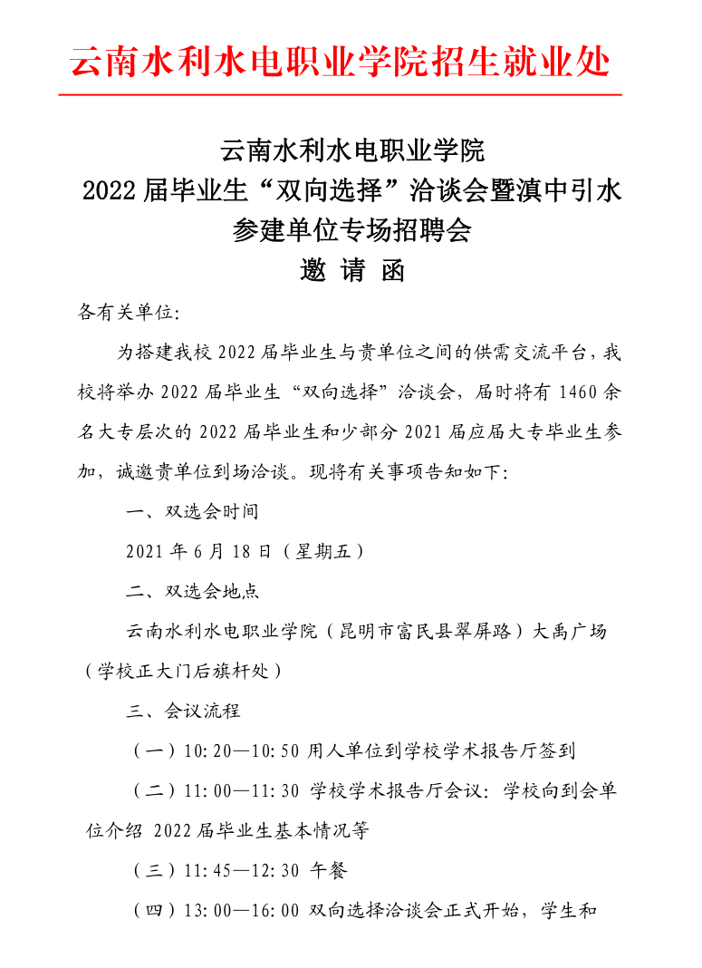 云南水利水電職業(yè)學(xué)院2022屆畢業(yè)生“雙向選擇”洽談會