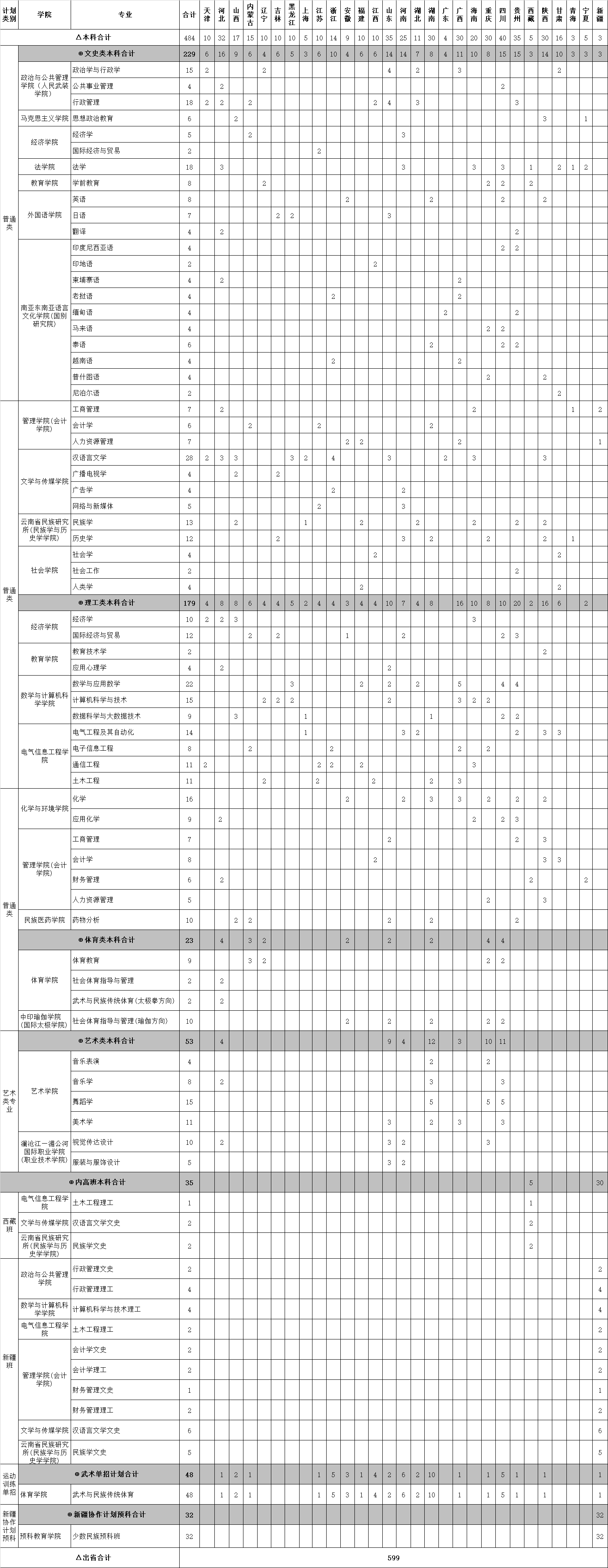 2021年出省本科及預(yù)科招生計(jì)劃