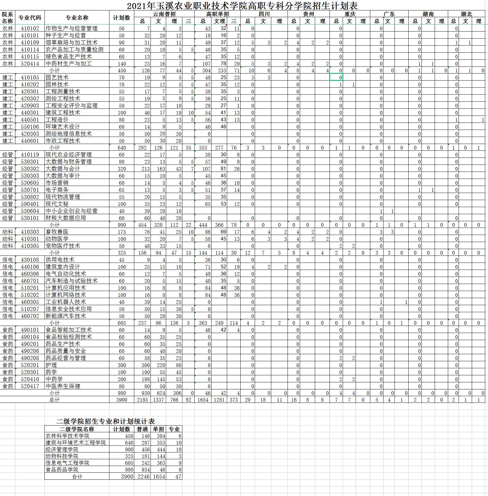 2021年玉溪農(nóng)業(yè)職業(yè)技術(shù)學(xué)院三年制專(zhuān)科招生計(jì)劃