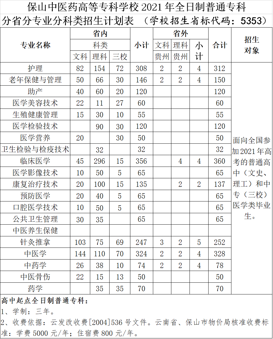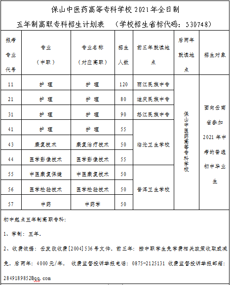 保山中醫(yī)藥高等??茖W(xué)校2021年招生簡章