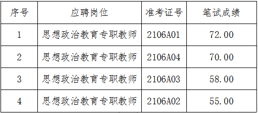 昆明理工大學津橋學院思想政治教育專職教師招聘筆試工作已圓滿完成,現(xiàn)將筆試成績公布如下: