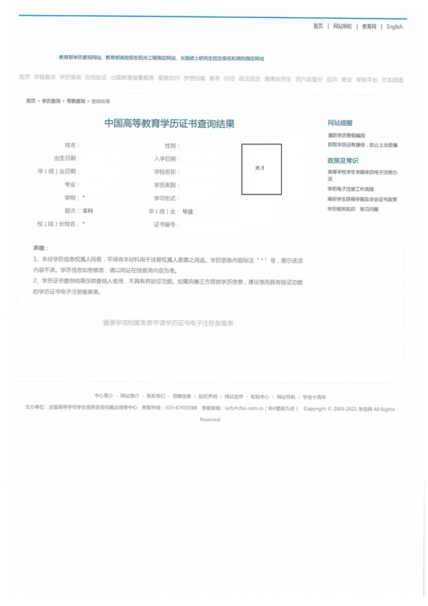 2.學(xué)歷查詢結(jié)果樣式