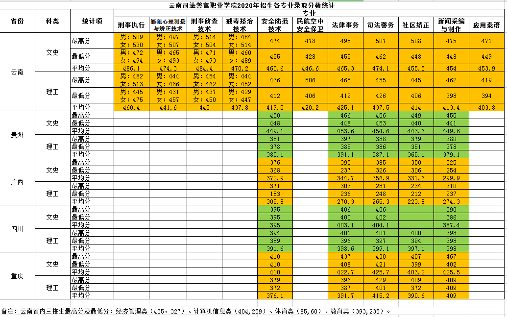 云南司法警官職業(yè)學(xué)院2020年招生各專業(yè)錄取分?jǐn)?shù)統(tǒng)計(jì)