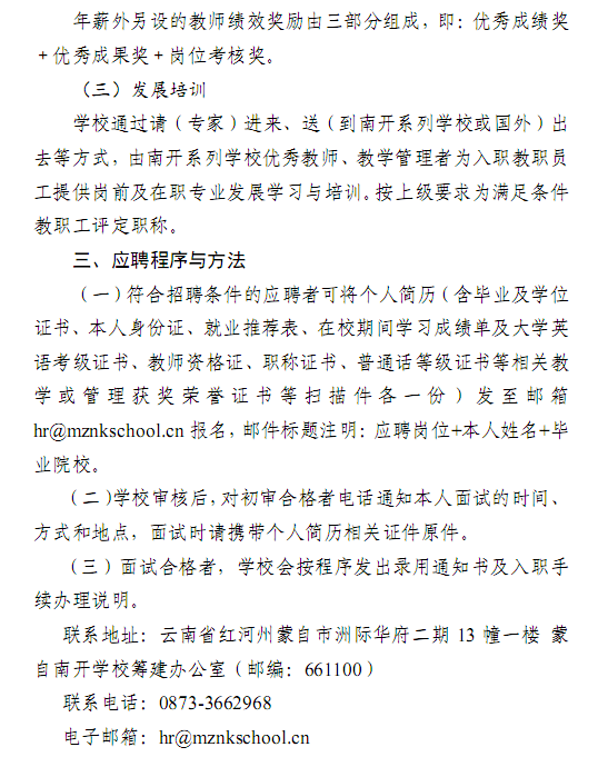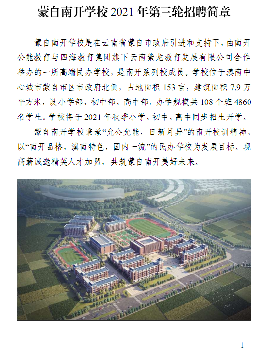 蒙自南開學(xué)校2021年第三輪招聘簡(jiǎn)章