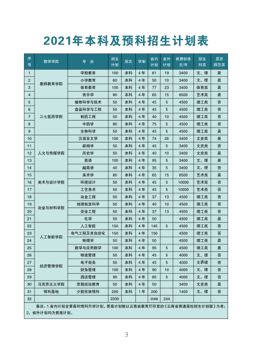 2021年文山學(xué)院本科及預(yù)科招生計(jì)劃表