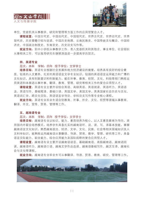 2023年文山學(xué)院人文與傳媒學(xué)院及招生