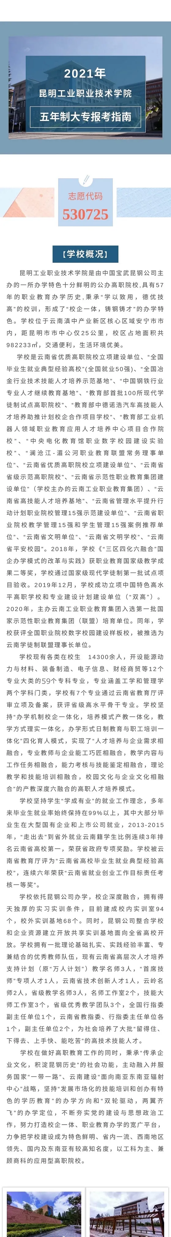 2021年昆明工業(yè)職業(yè)技術(shù)學(xué)院五年制大專報考指南