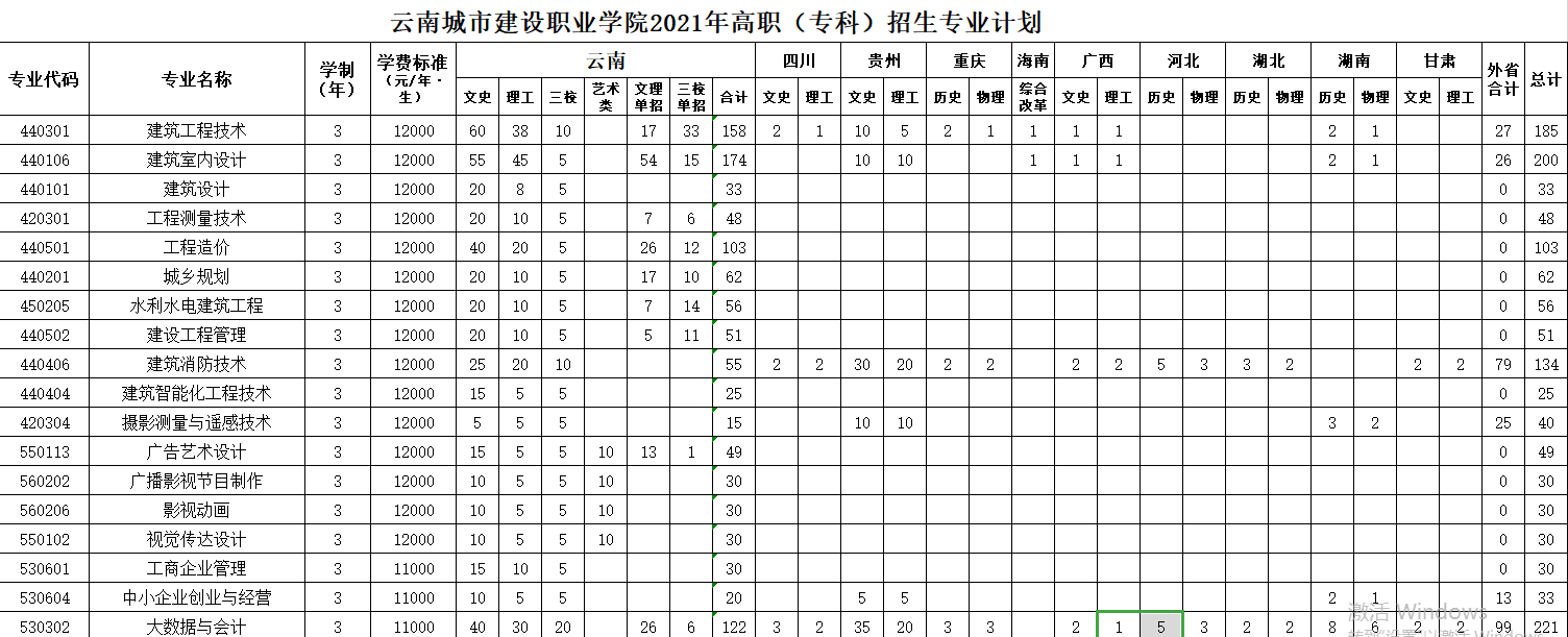 云南城市建設(shè)職業(yè)學(xué)院2021年高職(專科)招生專業(yè)計劃