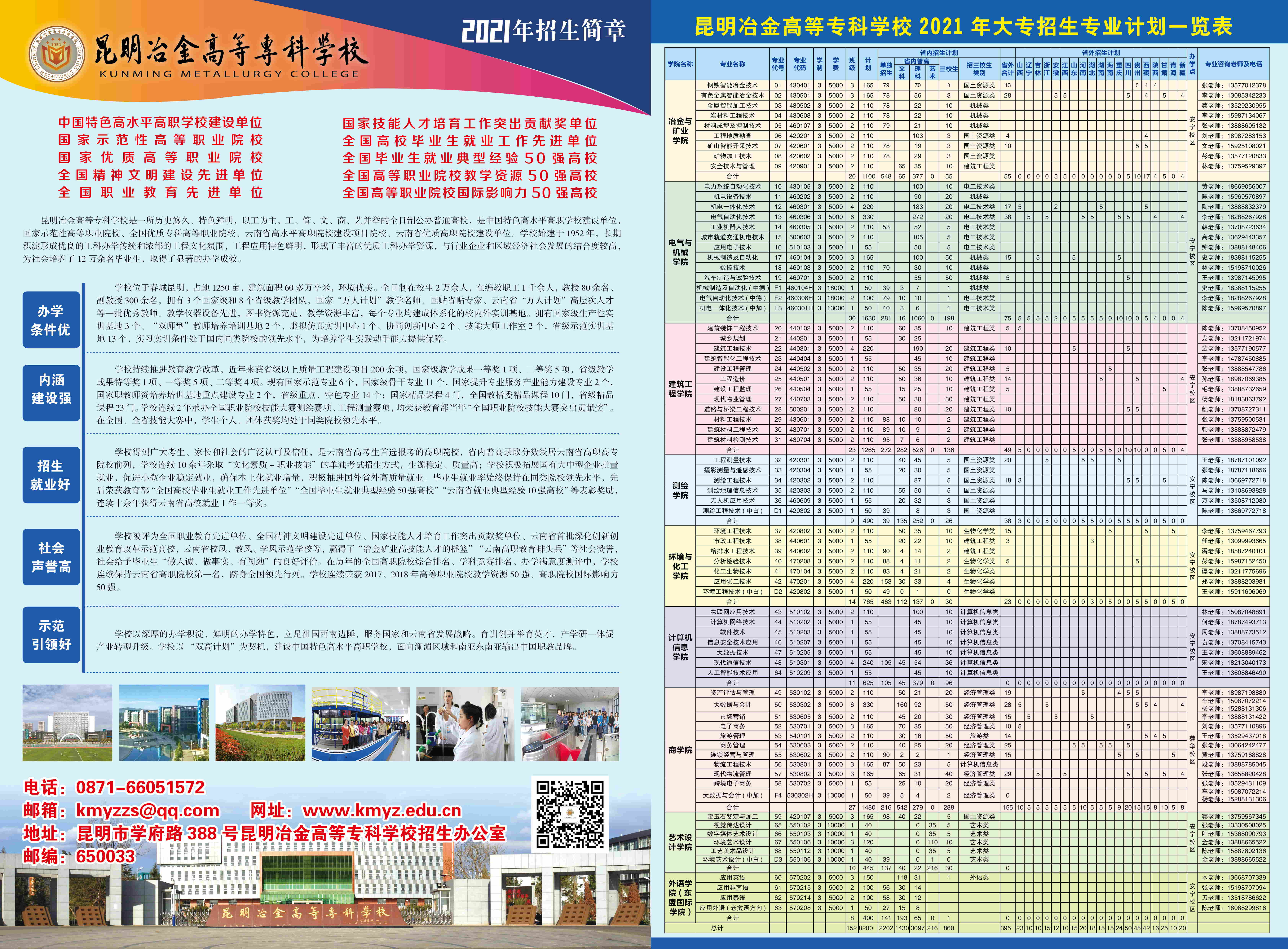 2021年昆明冶金高等??茖W(xué)校大專招生簡(jiǎn)章