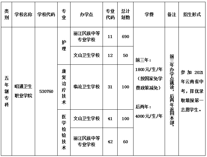 2021年昭通衛(wèi)生職業(yè)學(xué)院招生簡章(三年制、五年制大專、三年制中專)