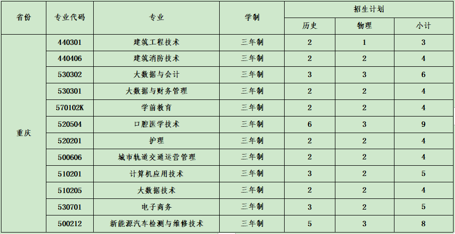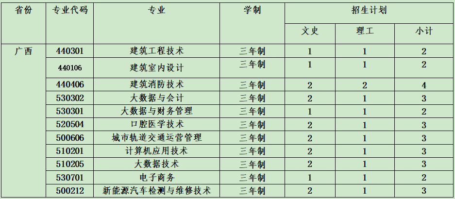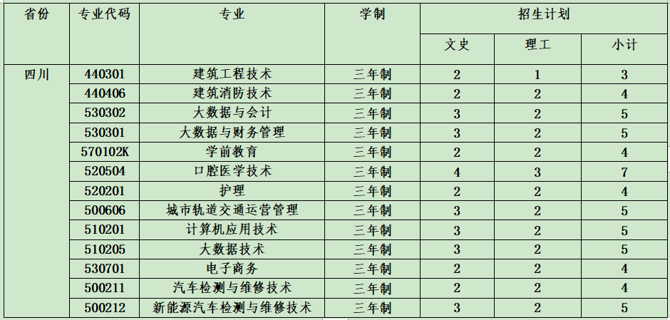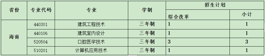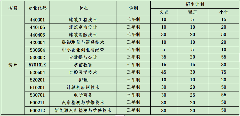 云南城市建設(shè)職業(yè)學(xué)院2021年省外招生計(jì)劃表