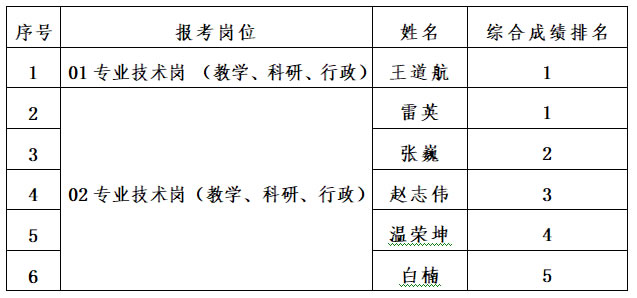 根據(jù)《事業(yè)單位公開招聘工作人員暫行規(guī)定》(中華人民共和國人事部令第6號)《云南省事業(yè)單位公開招聘工作人員辦法》(云人社發(fā)〔2016〕182號)《云南省事業(yè)單位公開招聘工作人員面試測評暫行辦法》(云人社發(fā)〔2016〕405號)有關(guān)文件規(guī)定及《云南輕紡職業(yè)學(xué)院2021年公開招聘事業(yè)單位高層次人才公告》的要求,經(jīng)上級部門備案批準(zhǔn),在學(xué)校紀(jì)委全程監(jiān)督下,我校于2021年7月6日開展面試工作,根據(jù)面試人員面試成績(面試考核綜合成績=專業(yè)面試成績+綜合面試成績)從高到低順序及崗位擬招聘人數(shù)等額確定進(jìn)入考察階段的人員?,F(xiàn)將進(jìn)入考察階段人員名單公示如下: