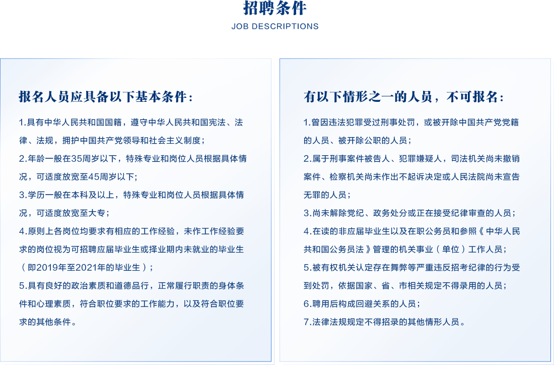 (三)本公告所附相關(guān)文件與公告具備同等效力,請(qǐng)應(yīng)聘人員仔細(xì)閱讀。因不遵守規(guī)定或個(gè)人疏忽造成的失誤所帶來(lái)的一切后果由本人自行承擔(dān)。