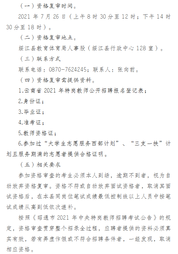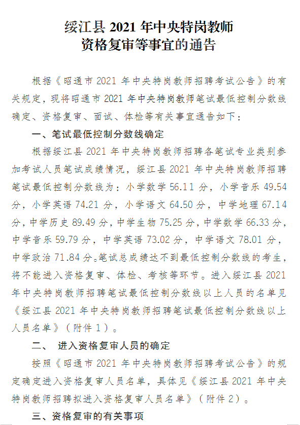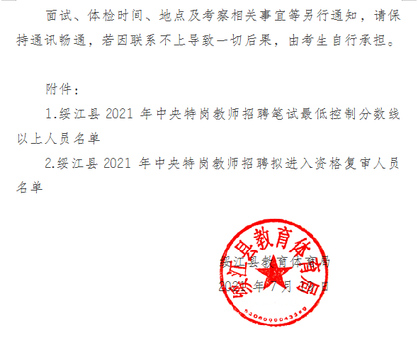 綏江縣2021年中央特崗資格復(fù)審等事宜的通告