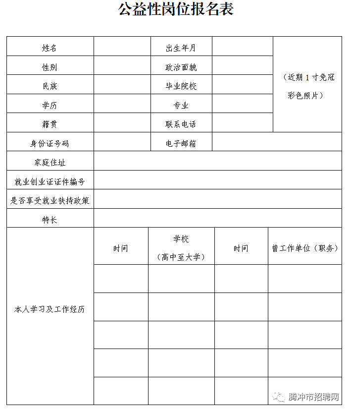 附件:公益性崗位報(bào)名表