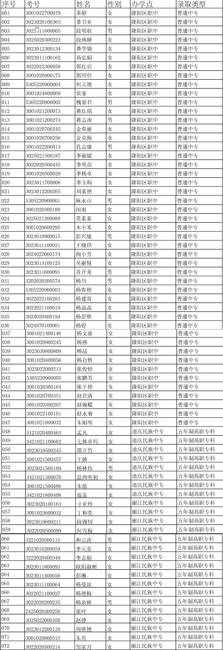 保山中醫(yī)專2014年中專、五年制高職??蒲a(bǔ)錄名單