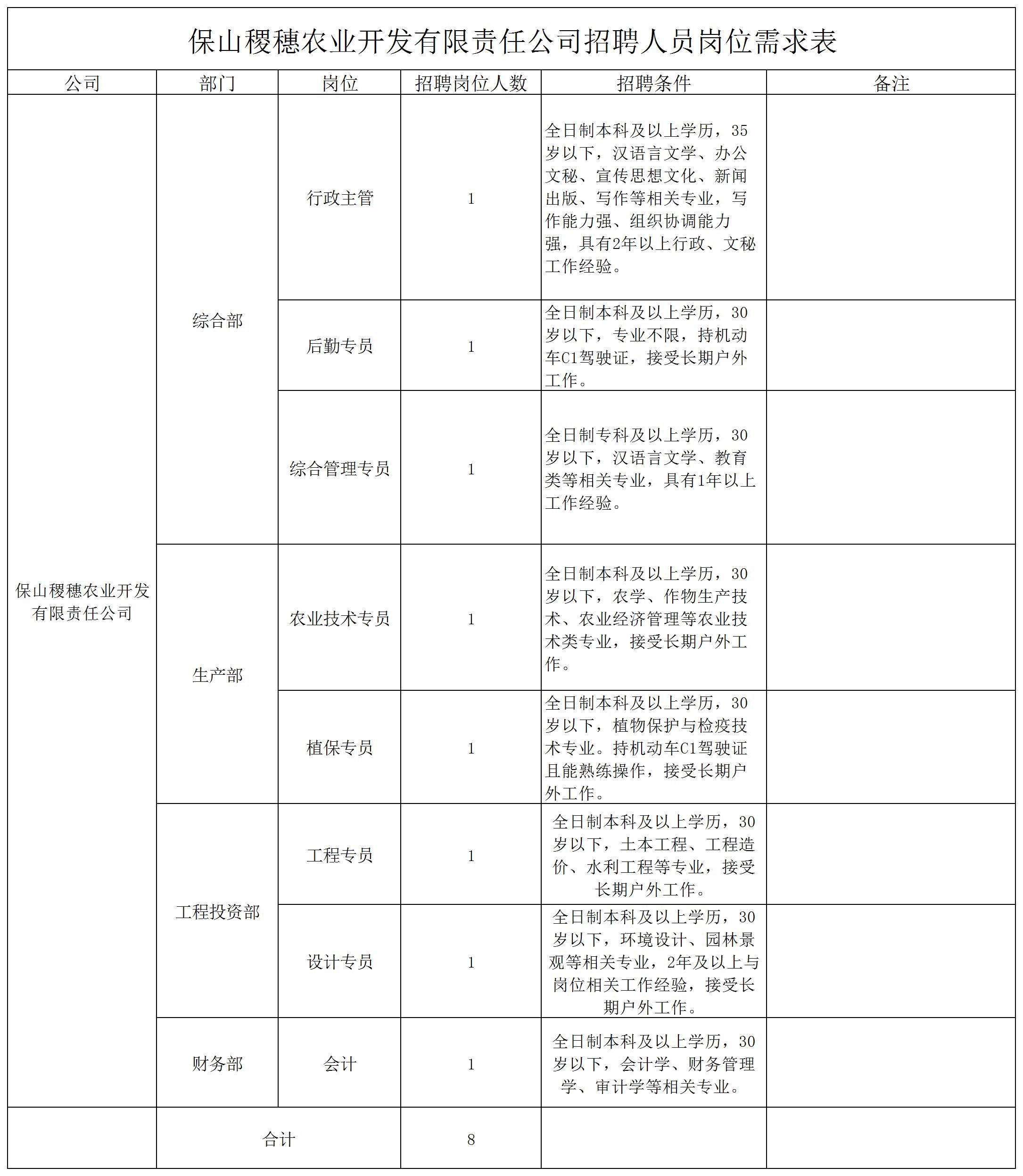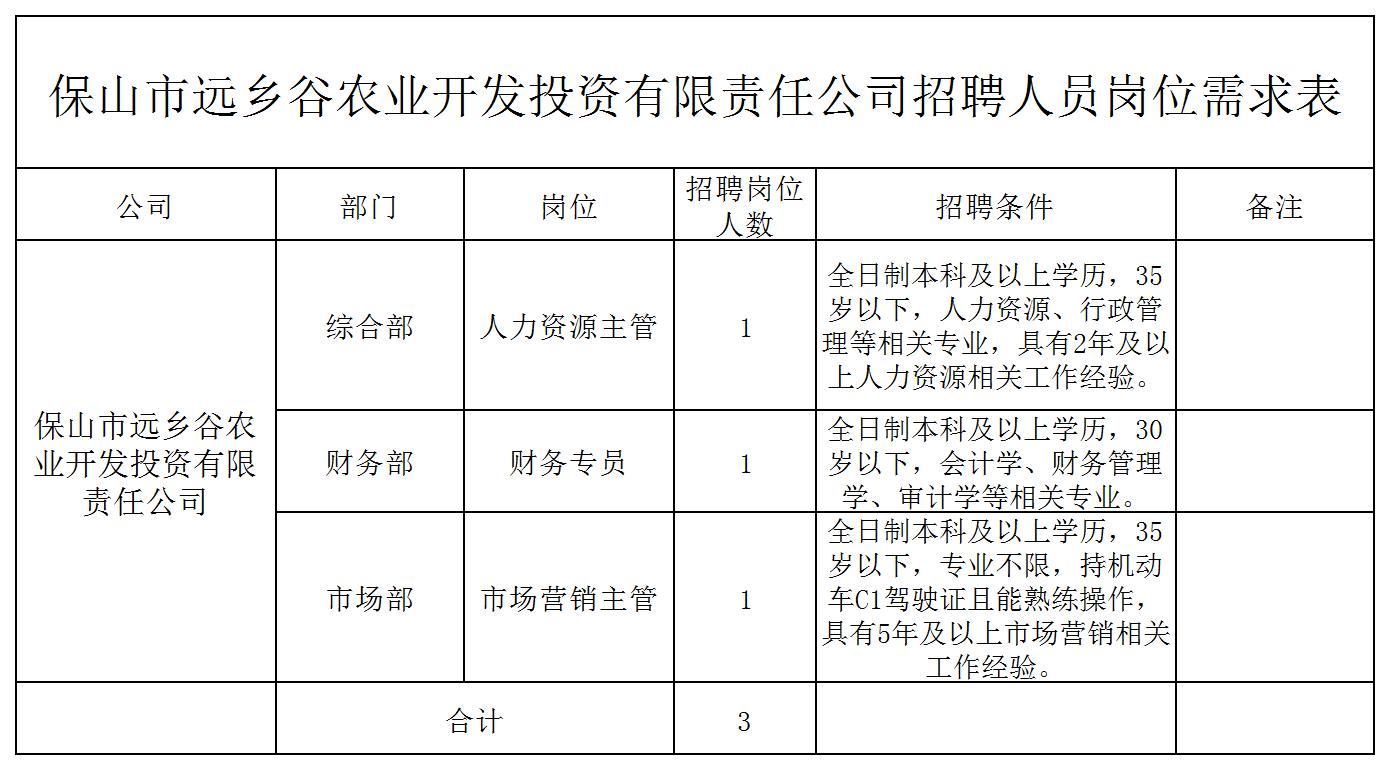 保山市遠(yuǎn)鄉(xiāng)谷農(nóng)業(yè)開發(fā)投資有限責(zé)任公司招聘公告