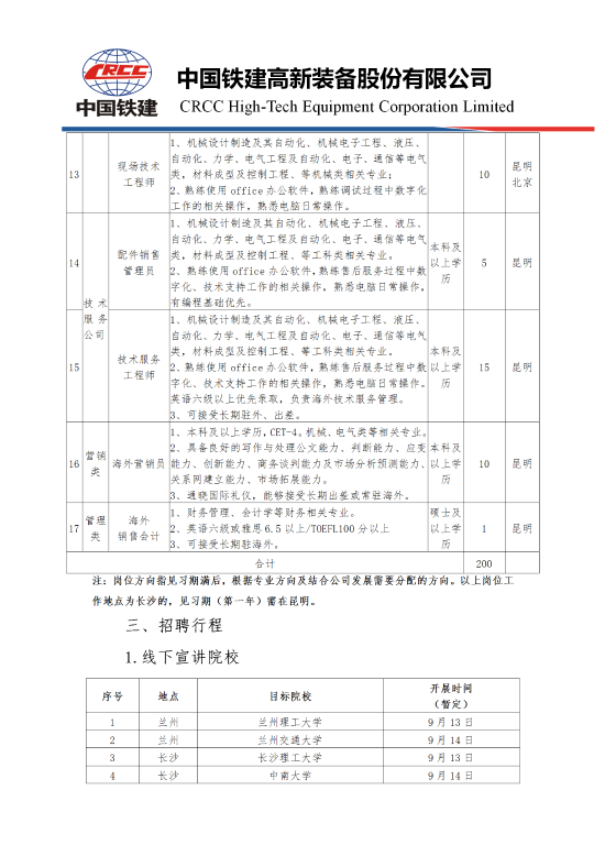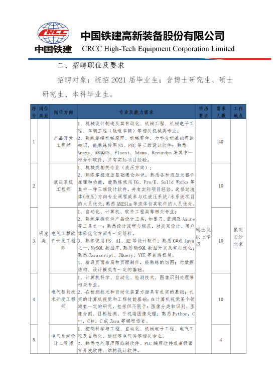 2022年中國鐵建高新裝備股份有限公司校園招聘簡章(秋季)