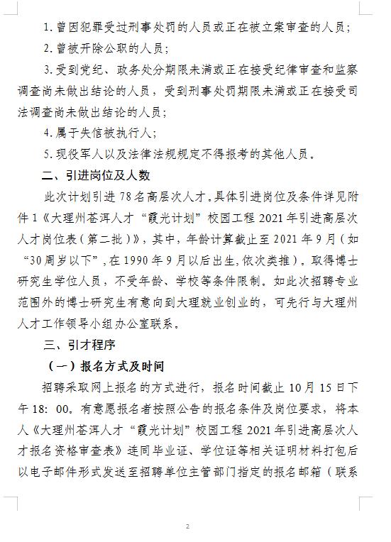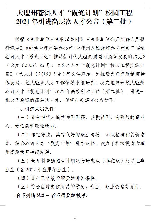附件:1. 大理州蒼洱人才“霞光計(jì)劃”校園工程2021年引進(jìn)高層次人才崗位表(第二批).xlsx
