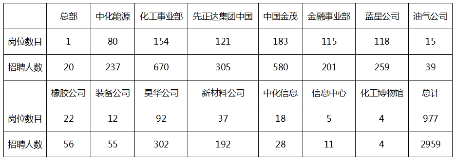 2022年中國中化將提供977個崗位,招聘共計2959人。