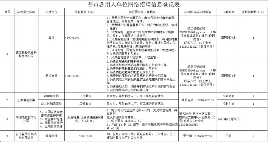 芒市2021年用人單位網(wǎng)絡(luò)招聘信息(第八期)