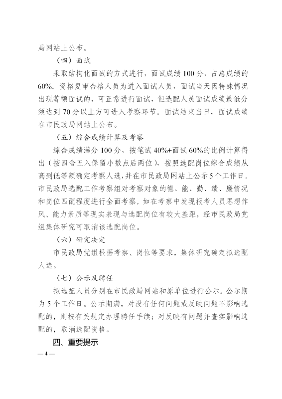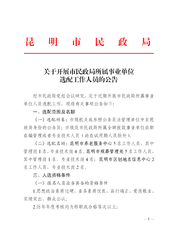 關(guān)于開展市民政局所屬事業(yè)單位選配工作人員的公告