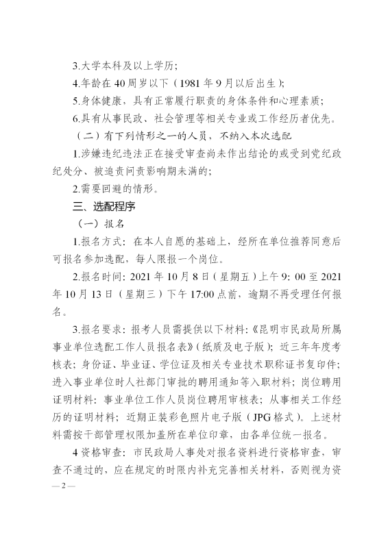 附件:昆明市民政局所屬事業(yè)單位選配工作人員報(bào)名表