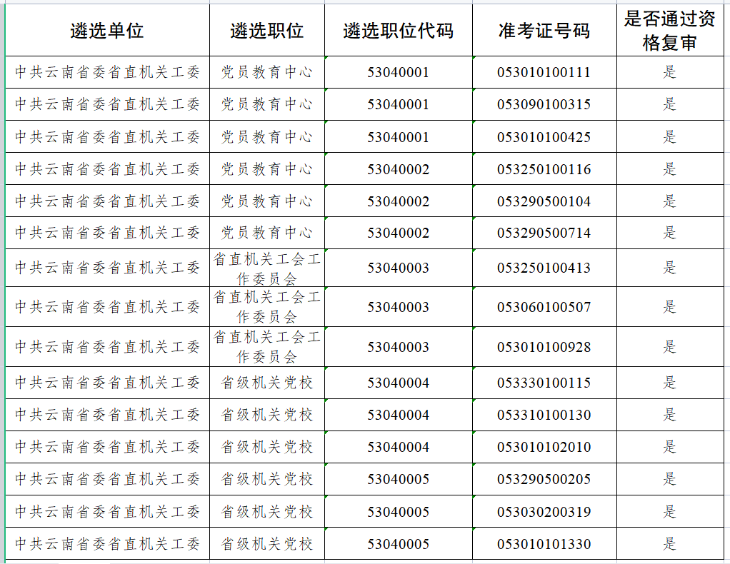 詳見《中共云南省委省直機關工委2021年公開遴選公務員進入面試人員名單》