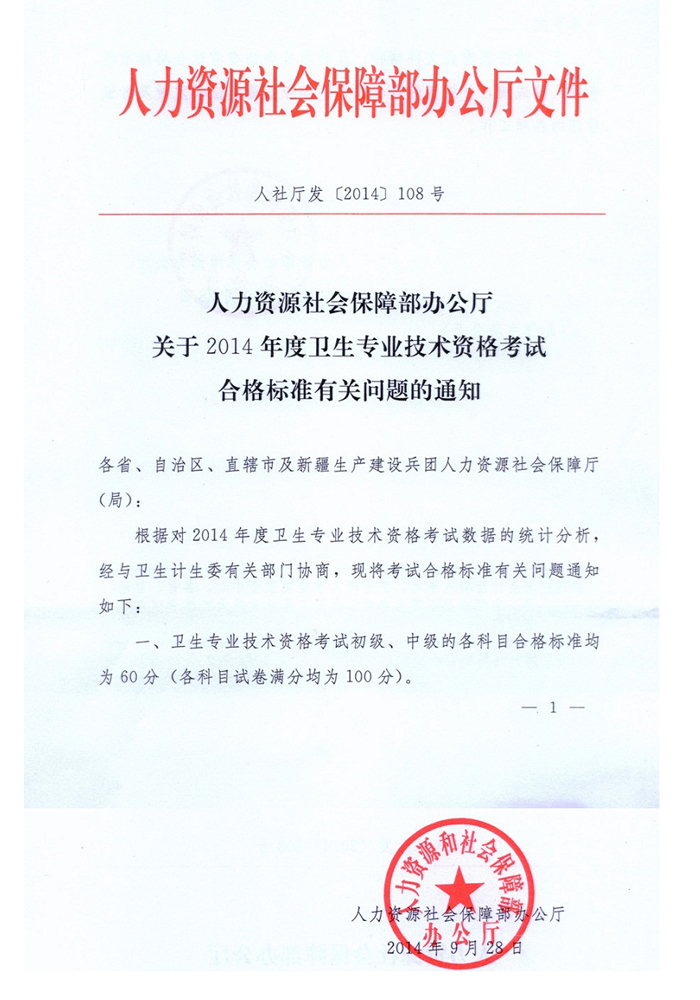 關(guān)于2014年度衛(wèi)生專業(yè)技術(shù)資格考試合格標(biāo)準(zhǔn)有關(guān)問題的通知