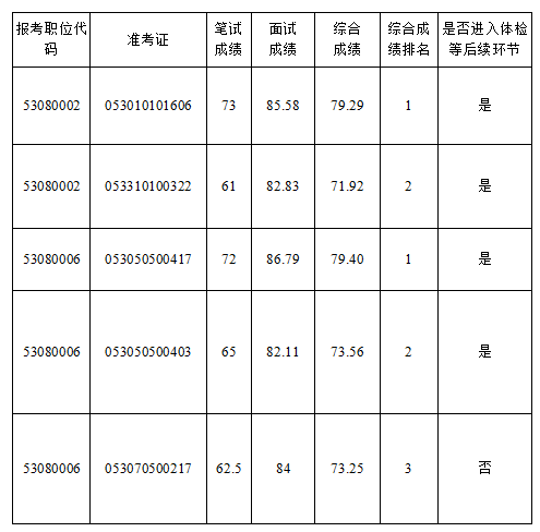 一、綜合成績(jī)和進(jìn)入體檢等后續(xù)環(huán)節(jié)人員名單