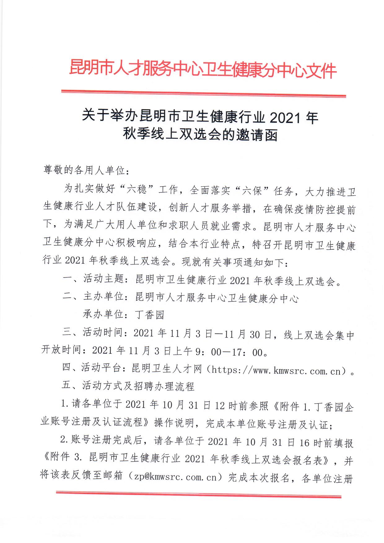 昆明市衛(wèi)生健康行業(yè)2021年秋季線上雙選會邀請函