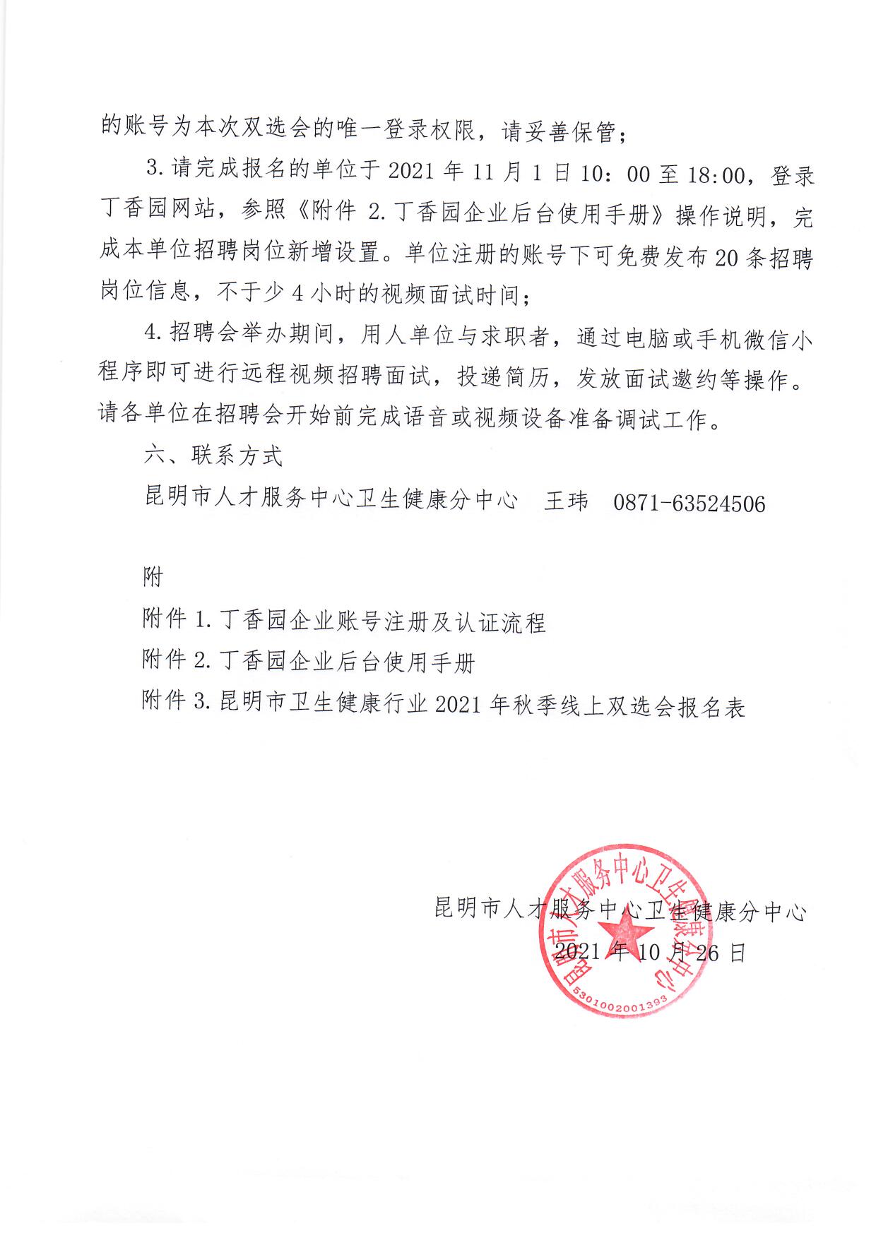 附件:昆明市衛(wèi)生健康行業(yè)2021年秋季線上雙選會邀請函附件
