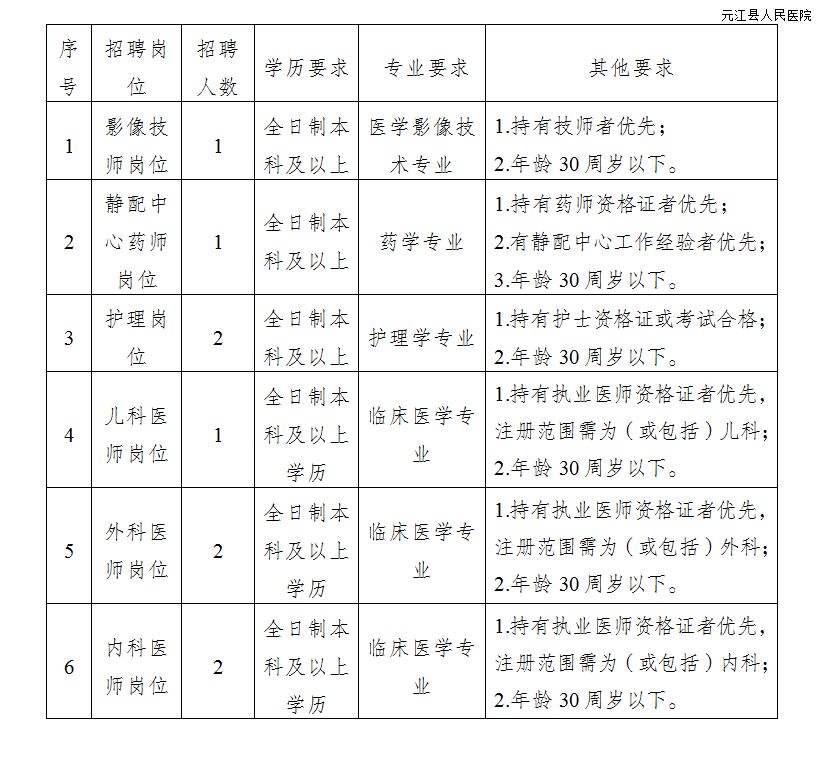 元江縣人民醫(yī)院因工作需要,現(xiàn)面向社會(huì)公開(kāi)招聘一批合同制工作人員,現(xiàn)就招聘有關(guān)事宜公告如下: