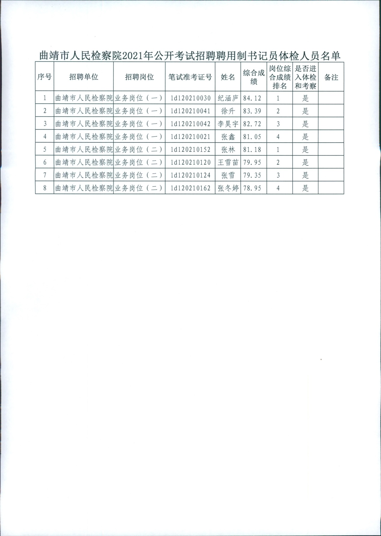 現(xiàn)將曲靖市人民檢察院2021年招聘聘用制書(shū)記員體檢相關(guān)事宜公告如下: