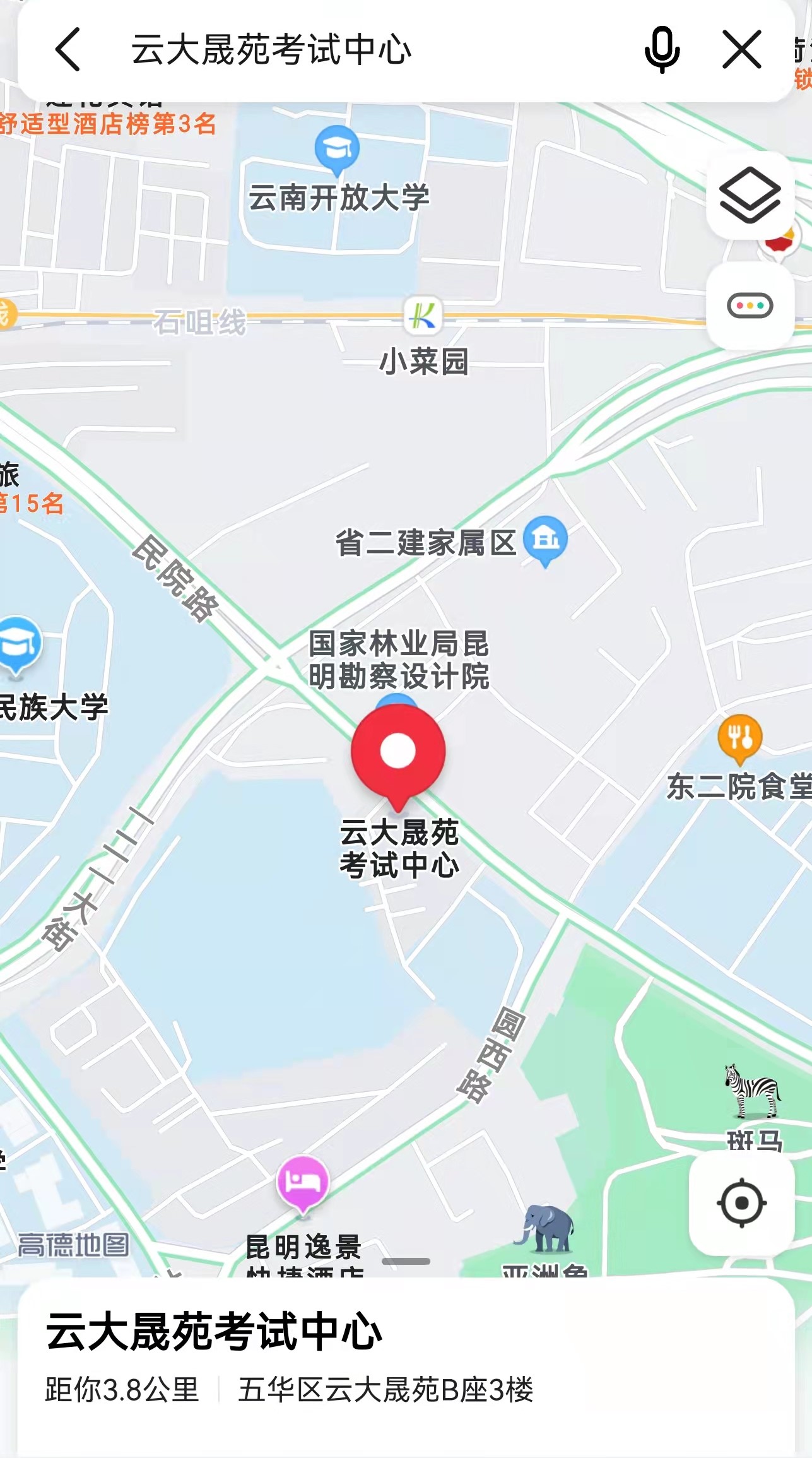 1.云大晟苑考試中心考場(五華區(qū)云大晟苑B座3樓)