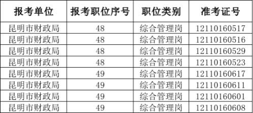 昆明市財政局2021年公開遴選公務(wù)員面試人員名單