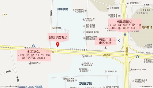 或乘7路、56路、64路、69路、106路、111甲、K13路公交車至昆明市體育館下。