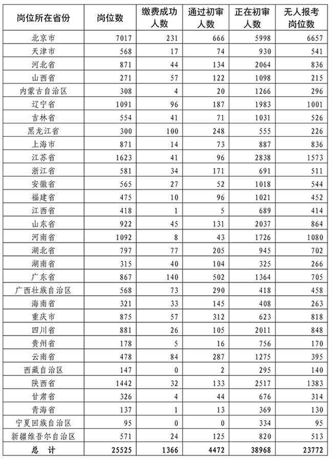 1.截至12月5日18時各省份崗位報考情況統(tǒng)計表