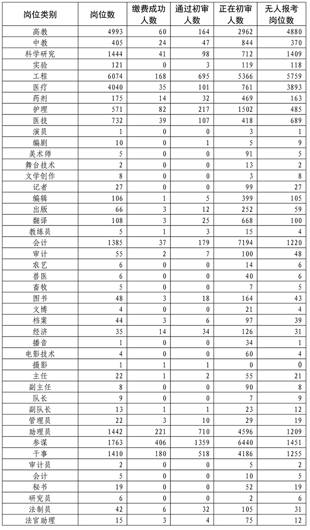 2.截至12月5日18時各崗位類別報考情況統(tǒng)計表