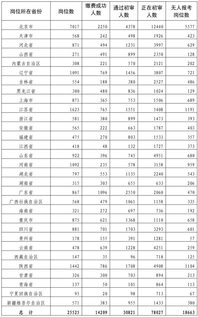 1.截至12月6日17時各省份崗位報考情況統(tǒng)計表