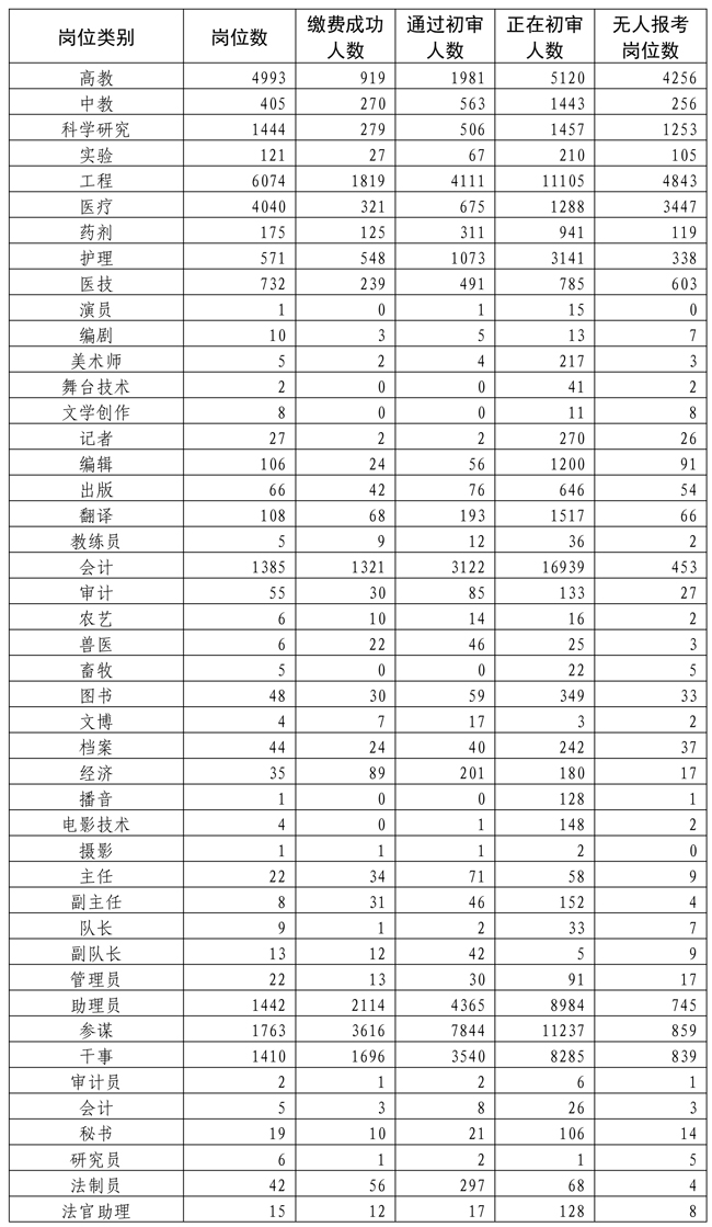 2.截至12月6日17時各崗位類別報考情況統(tǒng)計表