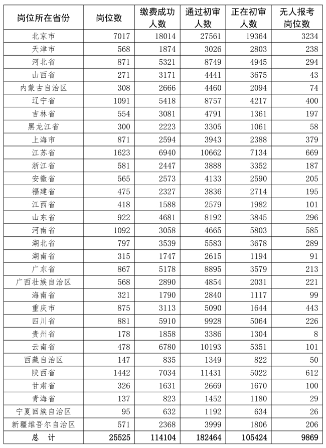 1.截至12月8日17時各省份崗位報考情況統(tǒng)計表