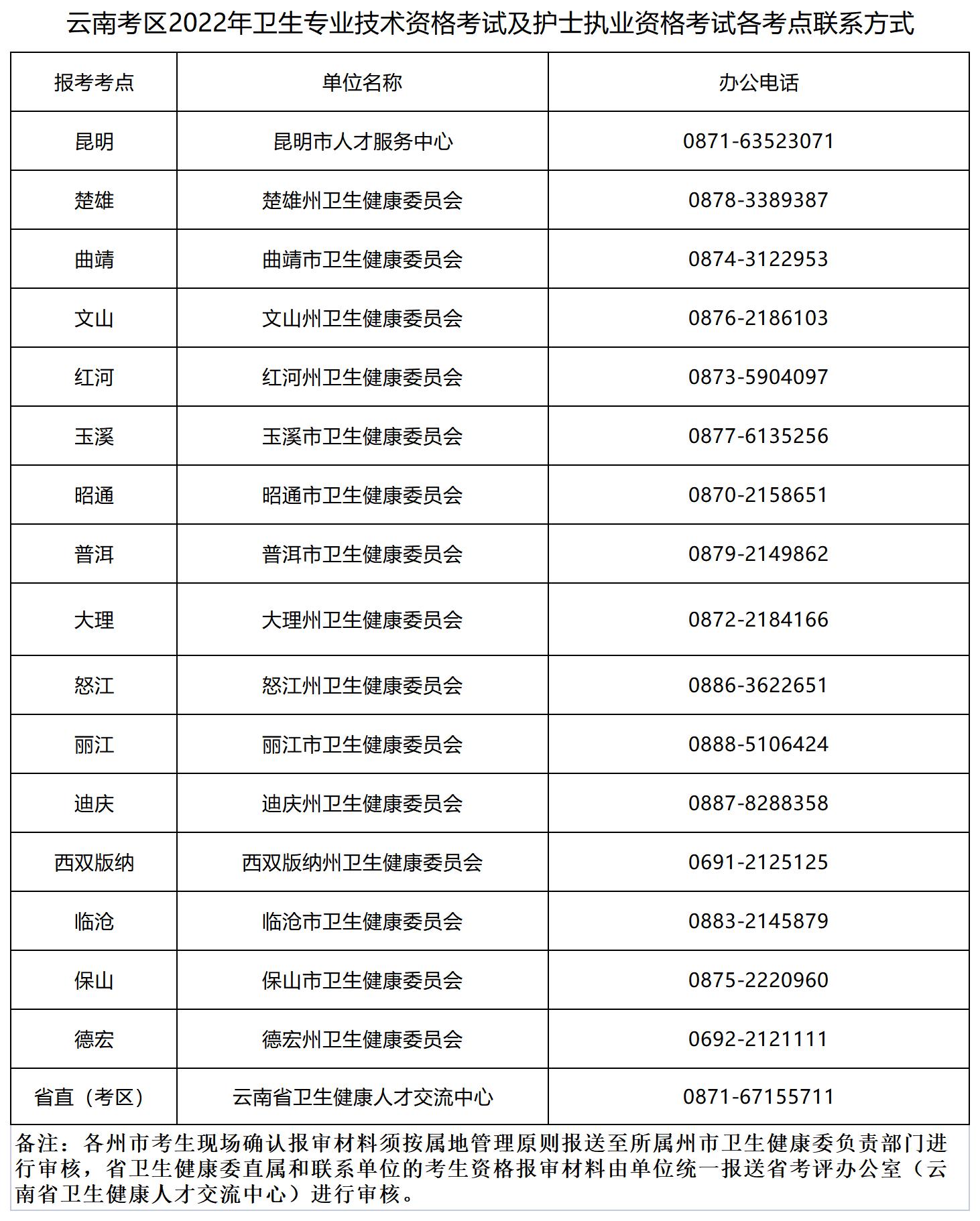 云南考區(qū)2022年衛(wèi)生專業(yè)技術(shù)資格考試