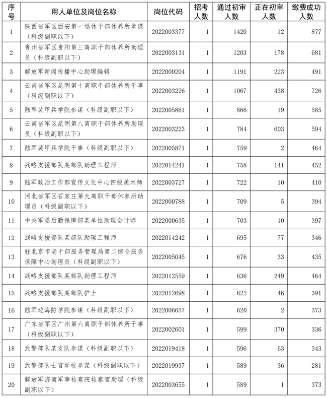 2022年全軍面向社會(huì)招考文職人員報(bào)名數(shù)據(jù)(截至12月7日17時(shí))