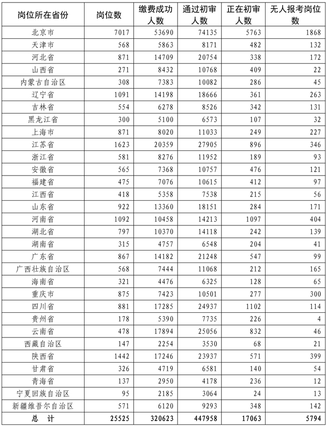 1.截至12月10日17時各省份崗位報考情況統(tǒng)計表