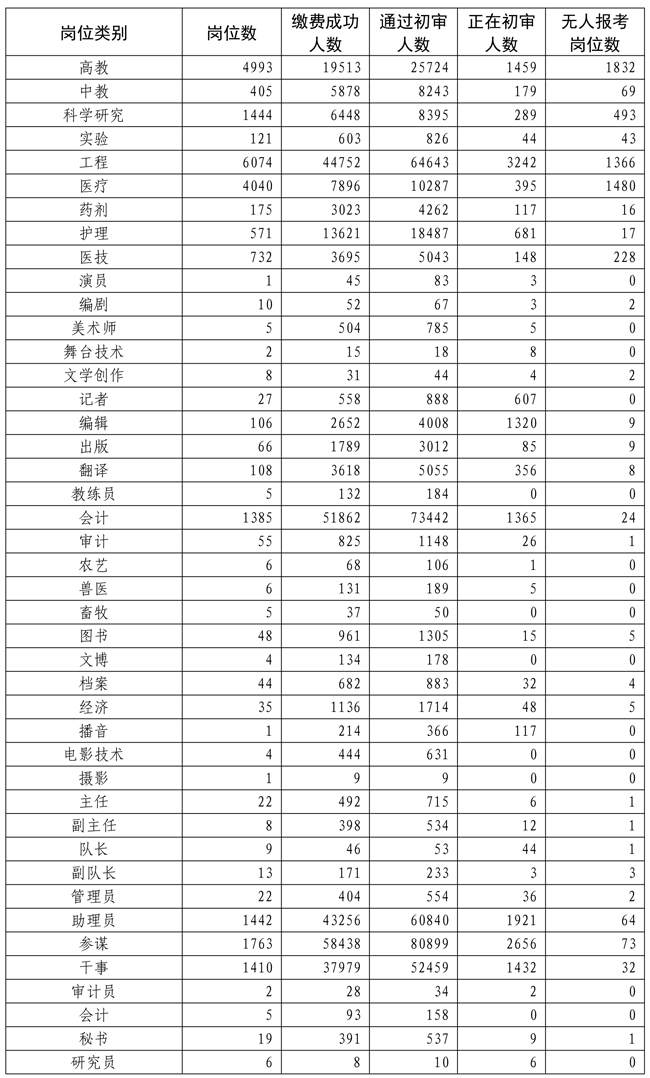2.截至12月10日17時各崗位類別報考情況統(tǒng)計表