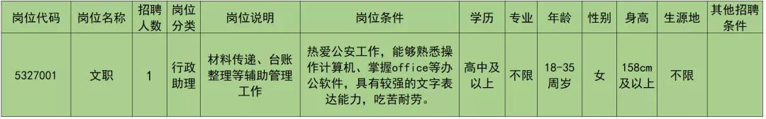 本次招錄共設(shè)1個崗位,女性1人。詳情請關(guān)注西“西盟警方”微信公眾號或西盟長安網(wǎng)(www.xmcaw.gov.cn)查詢。