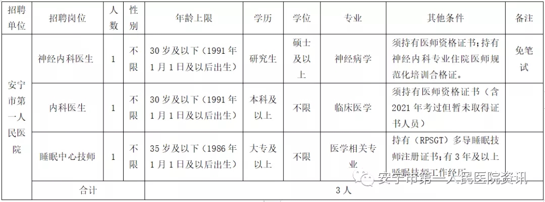 安寧市第一人民醫(yī)院2021年工作人員(非事業(yè)編制)招聘啟事