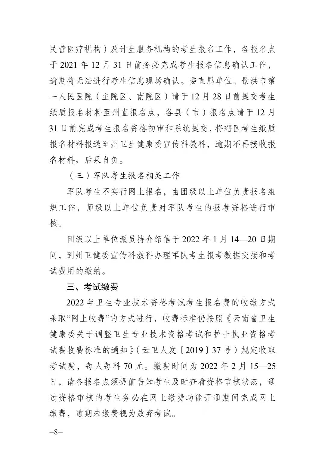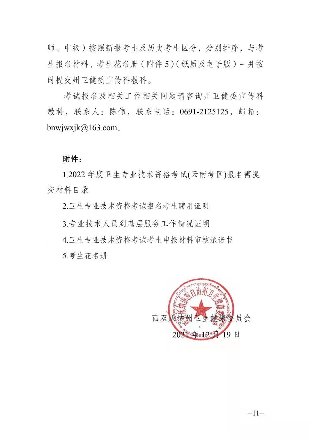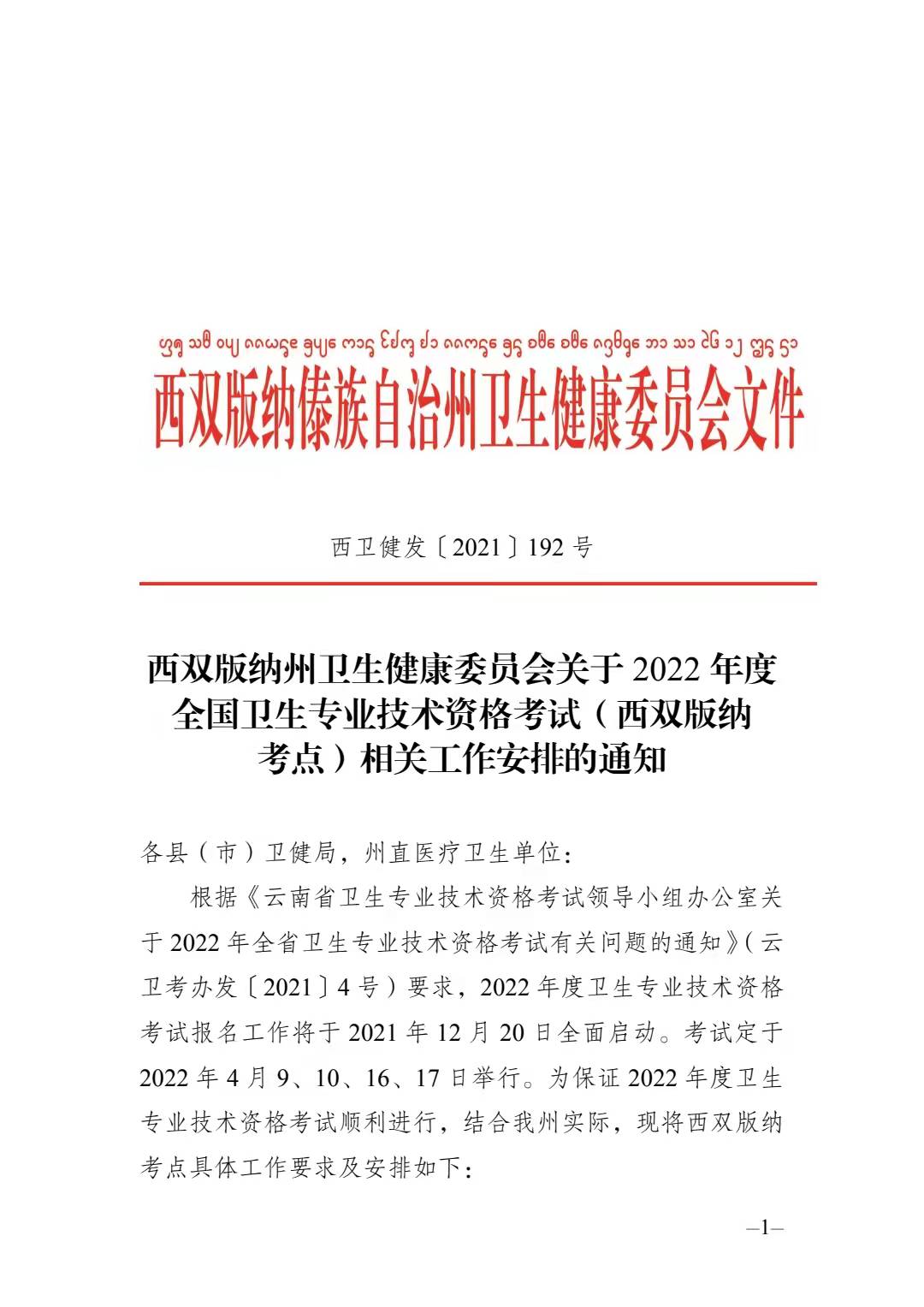 關(guān)于2022年度全國衛(wèi)生專業(yè)技術(shù)資格考試(西雙版納考點)
