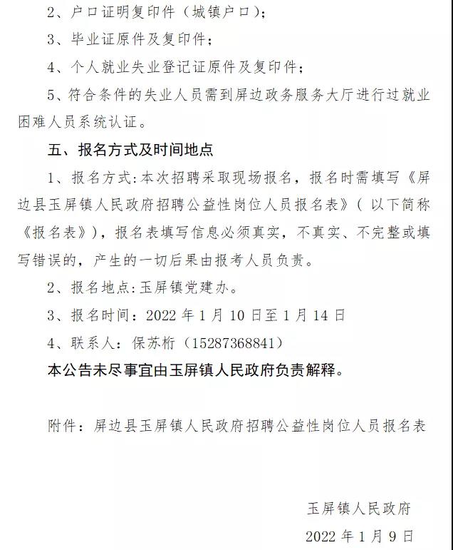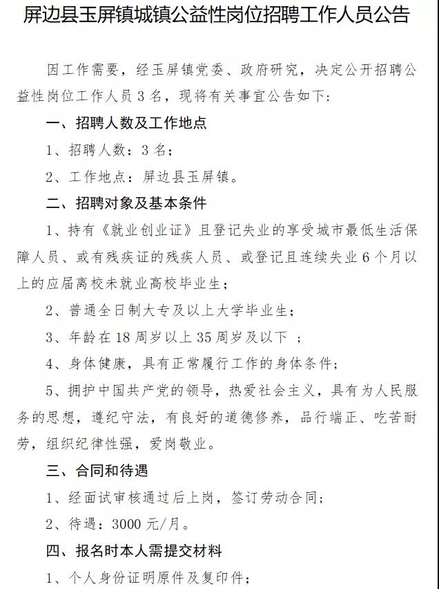 屏邊縣玉屏鎮(zhèn)城鎮(zhèn)公益性崗位招聘工作人員公告